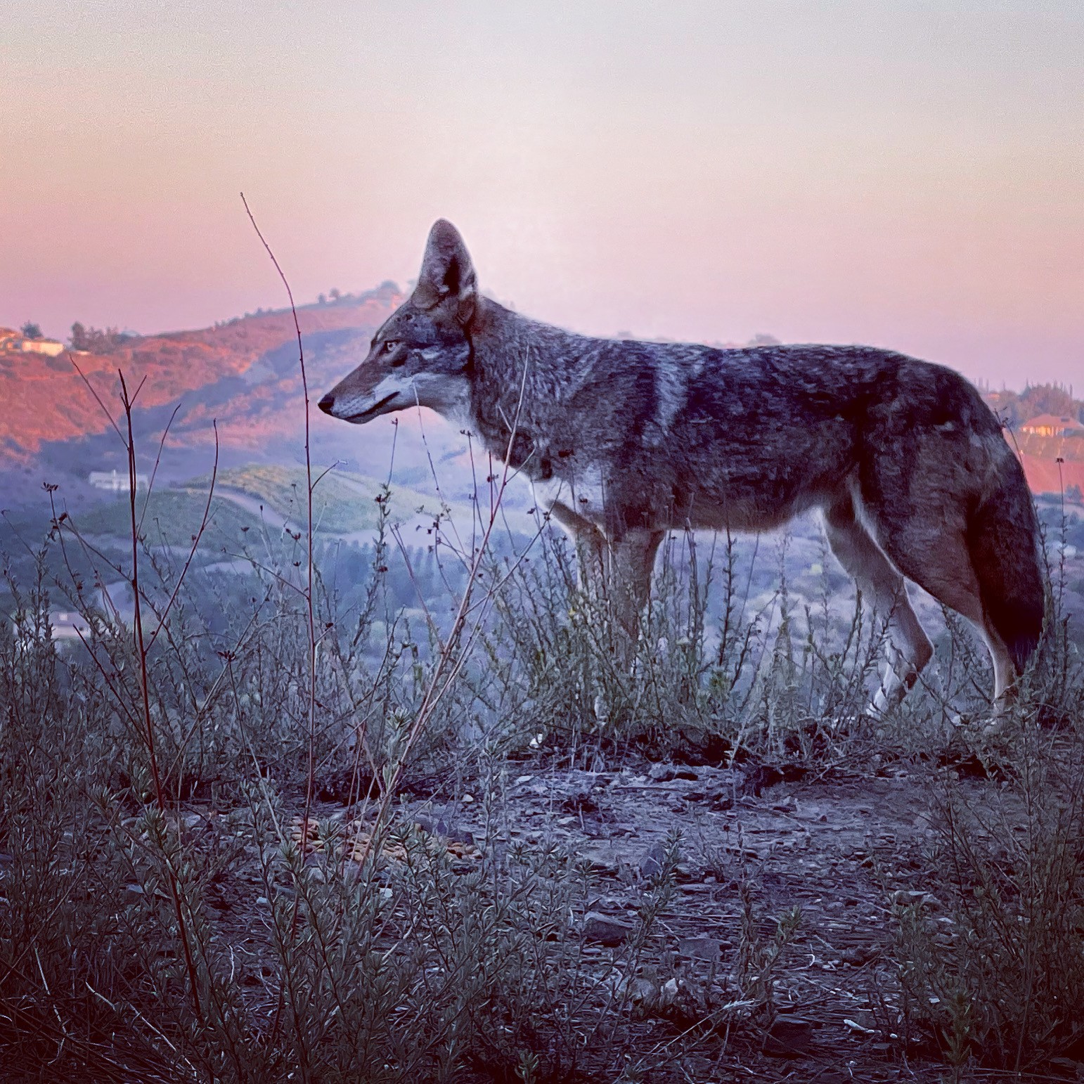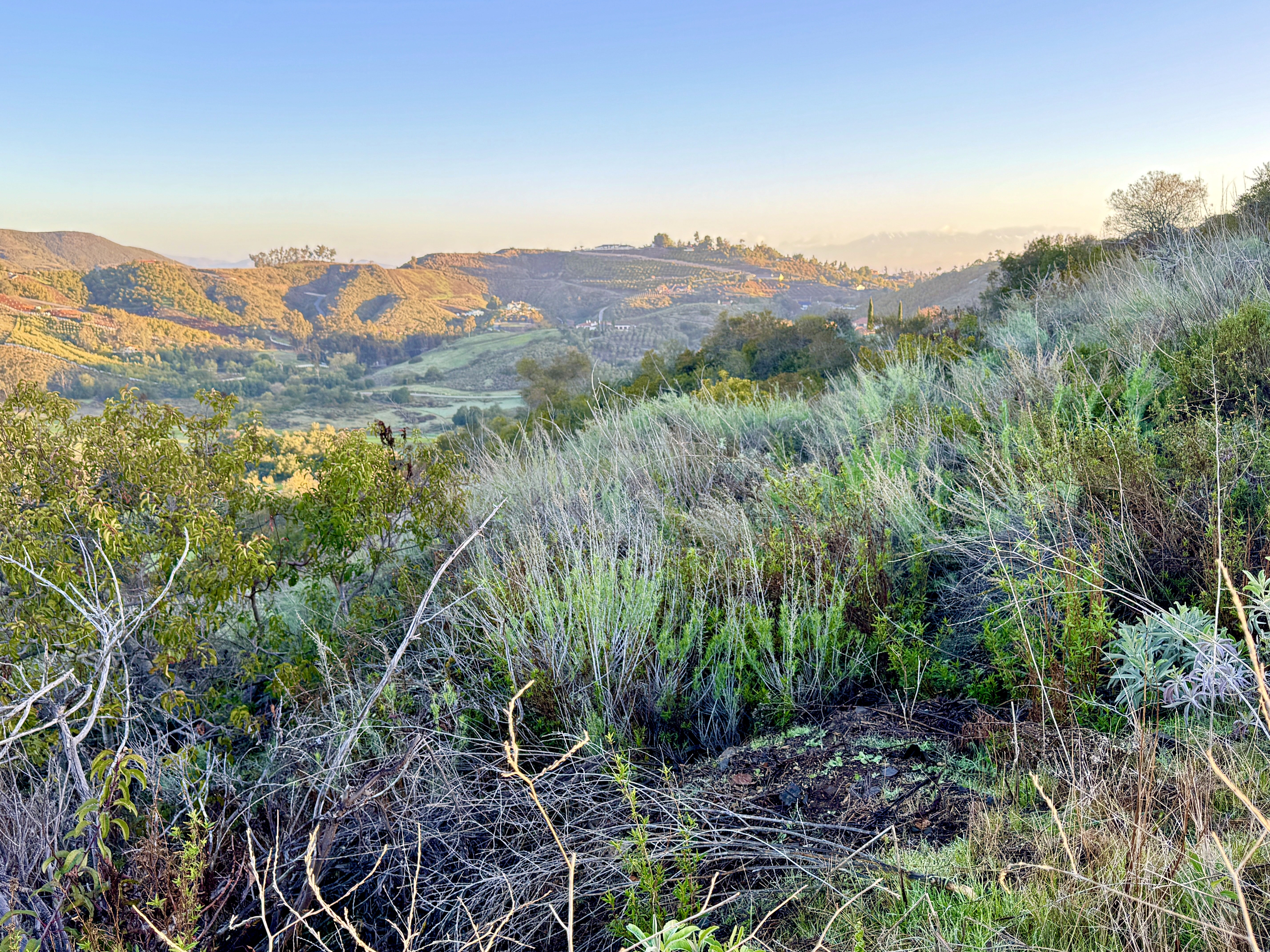 Sage, wildflowers, native brush, old oaks, grasses, butterflies, bees, quail, coyotes, gophers, hawks, rabbits, snakes, bobcats, and more.